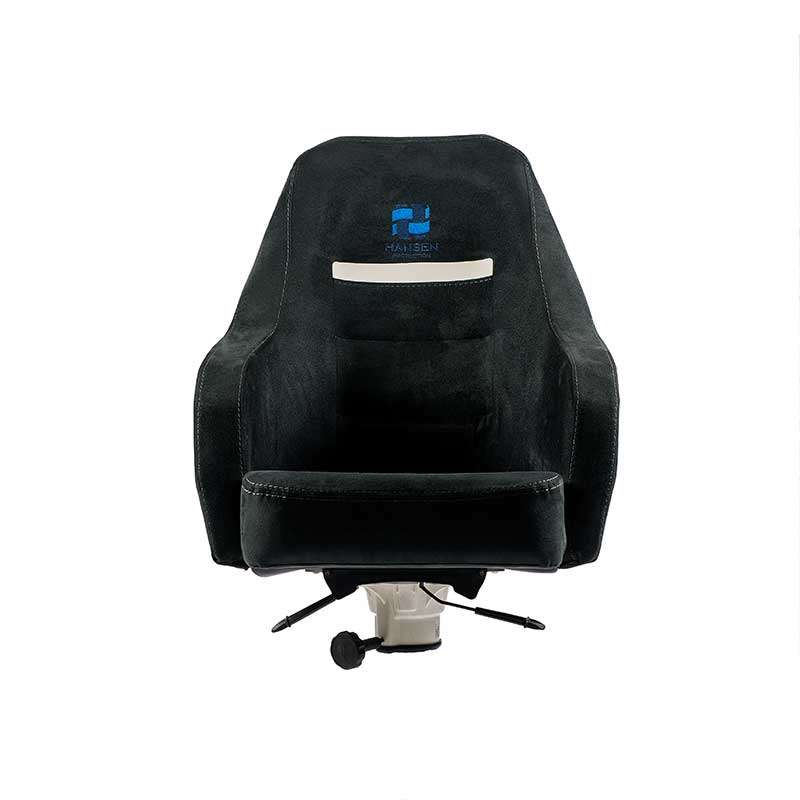 Dette er en stol som har ergonomisk utforming og gir en meget god sittekomfort. Stolen er laget i skum av beste kvalitet og leveres i hud, stoff eller imitert skinn. Leveres med oppvippbar frontpute som standard. Dette er en av våre top-line stolmodeller – den er eksklusiv og populær, og velges av ledende båtprodusenter.