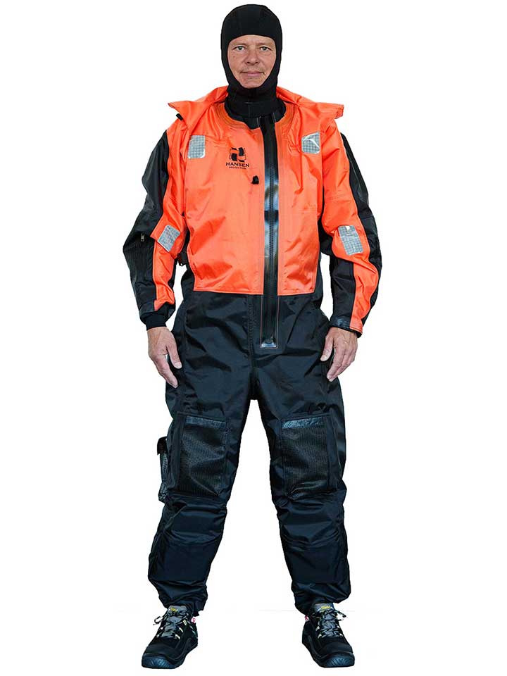 - Drakten er spesielt egnet for personer som arbeider på åpne, flytende oppdrettsanlegg.