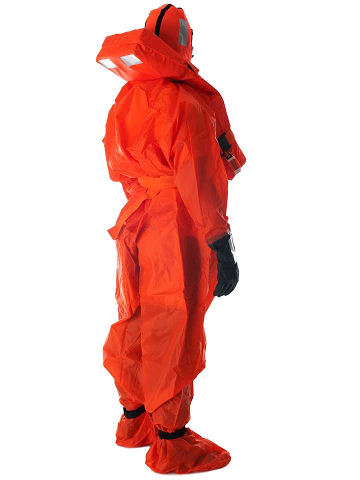 - Godkjent iht IMO/SOLAS-LSA Kode del 2 som er en uisolert redningsdrakt med 1 times termisk beskyttelse i vann med temperatur under 5 grader Celsius
