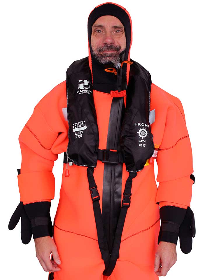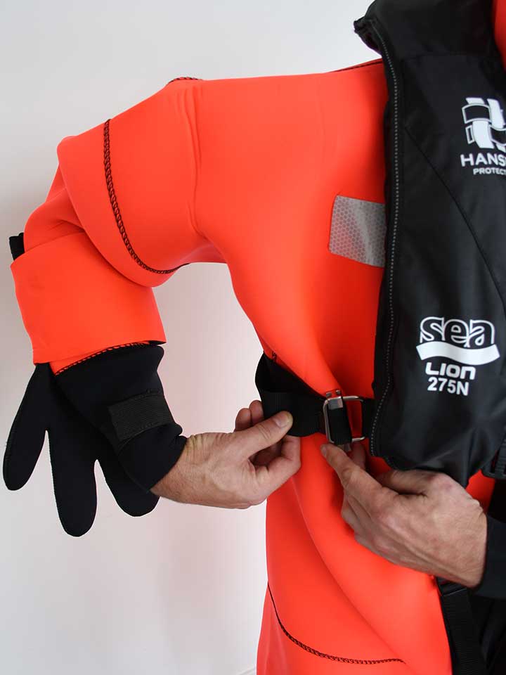 The SeaLion 275N lifejacket complies with the Mensafe Test Protocol (HSE-UK) when used together with our SeaEco Immersion Suit.